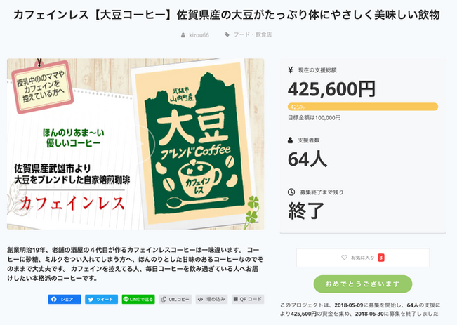 5つの起案を1つの県から同日同刻に立ち上げるのは世界で初の試みとなり、第1弾として佐賀市、武雄市、太良町から起案をたて、支援総額4,249,720円、総人数455人の方にご支援をいただきました。